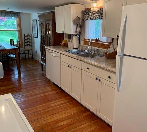 A beautiful historic brick and frame home with many updates! This cozy 2 bed/2 bath/2-car garage cottage is close to downtown Galena's Main Street restaurant district. This rare find offers two lots with expansive yard space. The main level has an updated kitchen with white cabinetry, white appliances, a stackable washer/dryer, a spacious living room, and a cozy bedroom with an adjacent full bath. The upper level has built-in storage at the top of the stairs, a large master bedroom that was originally two rooms now open to one, and a second adjacent full bath. This home has refinished pine wood flooring throughout and new tile flooring in the bathrooms. The small rear deck leads to a well-maintained yard with a quaint swing. A detached two-car garage with two additional parking spots sits on the second lot across the alley against a wooded backdrop. Previous sellers stated that updates in 2017 include new electrical panel, some wiring, water and drain-pipes in house, kitchen, upper bath remodel and main floor bath addition, and second bedroom with closet, floors refinished, new air ducts upstairs, most drywall redone, fresh paint on walls and trim, scraped and painted exterior trim and shutters. Updates in 2019 include new landscaping and fence front and back, new side door and windows in the garage, new concrete driveway, new storm doors front and back, new furnace and air conditioning, new storm windows and window treatments, new washer/dryer, and new bath fixtures and flooring in both bathrooms. This property won't last, so call today to see it!