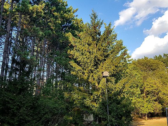 Fantastic location! A 1.5 story home with oversized lot with natural, tree lined privacy. This property boasts an orchard area, large grass area, wooded area, outbuildings for storage or kids play house, 2 stall garage, breezeway walk through to main level living area with 2 bedrooms and a bath. Upper level has additional bedroom space and bath, lower level laundry, rec room and storage area has plenty of space to grow. This property has been owned by the same family for many decades and is ready for a new family to make it their own. Call today for a private showing.