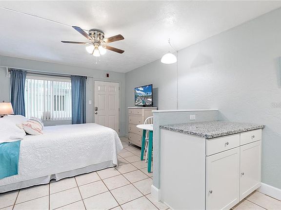 Location! Location! Location! Own a Slice of Paradise in Pass-a-Grille! You'll Love with this Awesome Ground Floor Studio Unit located right across the street from one of the World's most Beautiful Beaches! This Turn Key Beach Getaway was just Renovated including NEW paint, NEW Appliances, NEW Air Conditioner, and NEW Granite Kitchen Countertops and Cabinets. Super Cute Coastal Furniture is included! The Living Area Includes a Queen Size Bed, Flat Screen Television, End Tables and Dinette. The Updated Kitchen features Cabinets, Counters, Smooth Top Range, Refrigerator and Microwave. The Bathroom has Walk-in Shower and Separate Vanity. The Condo Community Allows for Short Term Rentals, Making it Easy to Generate Enough Income for the Condo to Pay for Itself! You'll absolutely love the Renovated Mid Century Modern Building with Tropical Landscaping, Laundry Facilities, and Most Importantly....Sunsets Every Night from the 2nd Floor Open Balcony! Walk to some amazing Restaurants (Grace's, Seahorse, Berkley Beach Club and Paradise Grille) and Shopping on Historic 8th Ave or Enjoy a Long Stroll on the Boardwalk or Beach that is Accessible right across the street from the Resort! Easy to Rent on AirBnB and VRBO. Make this your Vacation Happy Place, Sweet Little Money Maker or Both! Hurry, this one will go Fast! PETS ALLOWED! 2 pets, total of 60 lbs. Seller will consider financing with $50k down.