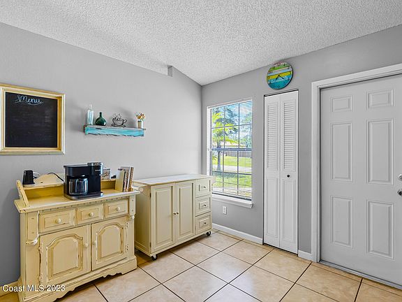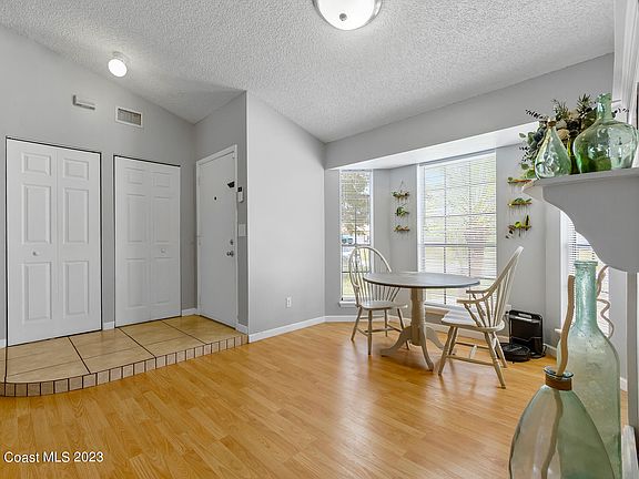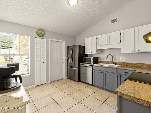 This wonderful 3 bed, 2 bath, home greets you with a lovely dining room & a beautiful bay window that lets in lots of natural light. The large living room is perfect for entertaining & the kitchen comes equipped with stainless steel appliances. The great split bedroom plan offers a primary bedroom that includes an en suite bathroom with a large walk-in closet. The additional living space opens to a fantastic outdoor oasis. Relax on the screened porch or spend your time outdoors by the fire pit, or cooking out on the patio. This yard offers great privacy, with its a huge fenced-in backyard, surrounded by beautiful palms and oaks.