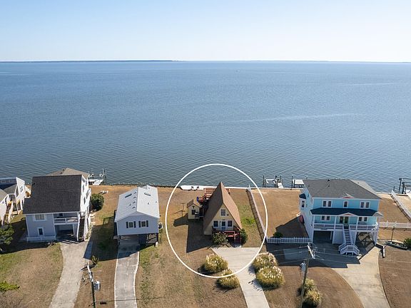 WATERFRONT...SOUNDFRONT home!  This adorable A-frame soundfront home is ready for its next generation of owners. 3 bedroom, 1 full bath home with STUNNING views of the Albemarle Sound  This bulkheaded property boast sunsets like you've never seen before. Soundside has an upper and lower deck, and outdoor shower. The neighborhood amenities offer so much for entertainment to include a soundside beach, boat ramp, basketball court, dog parks and a small additional fee  to access the community pool, tennis courts and clubhouse.