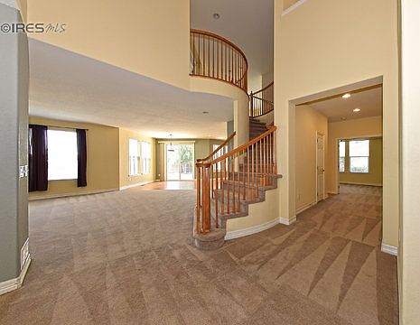 Views of Longs Peak! Relax in the hot tub and spacious perennial backyard of this 4 bed, 3 bath, plus office home. The kitchen boasts sile stone countertops, fingerprint free slate appliances, double convection ovens, 42" hickory cabinets, and under cabinet lighting. The center curved stairs, designer light fixtures, 2 fireplaces, Large yard and ample patios make this home perfect for entertaining. Tall windows with south west exposure offer views and ambient natural light.