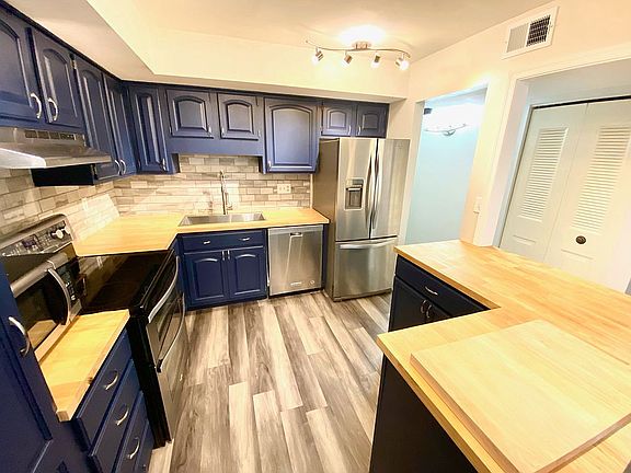 Welcome to 709 Highwood Dr.! This FIRST FLOOR, Open concept, 2 Bedroom, 2 full Bath condo has been fully updated with new flooring and renovated kitchen and baths! The kitchen is well-appointed with newer stainless appliances, updated butcher block countertops, cabinets that provide tons of storage, stainless sink and pulldown faucet. The Primary ensuite is spacious with two closets. Both bathrooms feature tiled showers with hand-held shower head options and new vanities with vessel sinks. Enjoy the spacious living area with a convenient built-in entertainment center. Ceiling fans featured in both bedrooms and lots of closets throughout for all your storage needs. Schedule your personal showing today and make this home yours just in time for you to enjoy your private covered patio and the refreshing pool! It's all about location as this property is in close proximity to Louisville's Nulu community and all that it offers. As an added bonus, the stackable washer / dryer are to remain!