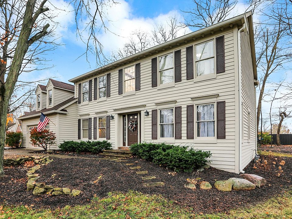 This is a remarkable Carmel home, called the Morton, located at the entrance of beautiful Rohrer Woods. Boasting 4 spacious bedrooms and 2.5 baths, it features a thoughtfully designed layout with French doors and built-in bookshelves and a warm family room complete with a cozy fireplace. A chef's dream is the heart of the home, equipped with a walk-in pantry, center island granite countertops, matching backsplash and stainless steel appliances. The home's interior is magnificently lined with all-stained dentil molding, tall baseboards and six panel doors. Step outside to a serene backyard retreat that will console anyone, while the gas fire pit provides plenty of heat for those chilly autumn nights. When you first walk into the foyer, you'll see a stately chandelier. Other breathtaking light fixtures are installed throughout the home. The expansive finished basement provides an ideal hangout space for teens, while an additional, unfinished adjacent area ensures abundant storage. The luxurious primary suite boasts a vaulted ceiling, a massive 20 foot walk-in closet and an ensuite bath with a garden tub, standup shower, double sinks and a private commode area. Most appliances, carpeting, water heater and a back-up sump pump are new and were installed this year. There are many updated features throughout this Colonial, American Traditional home. In addition, there is easy access to the Monon Trail. You can ride bicycles to downtown Indianapolis, past Westfield or connect to other trails. If walking is your preferred mode of travel, this stunning home is minutes away from Wednesday night concerts at the Gazebo, the Farmers' Market, the Allied Solutions Center for the Performing Arts, CarmelFest or a myriad of restaurants. Situated in picturesque Carmel, Indiana, consistently ranked as one of the best places to live in America--this home is a must-see. Don't miss the opportunity to make it yours!