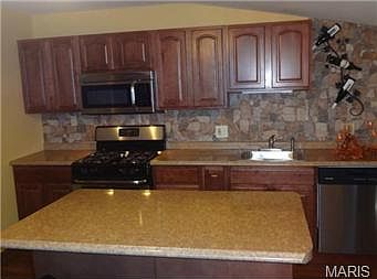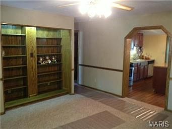 WELCOME TO 709 JACKSON in Historic St. Charles! Beautifully rehabbed 2BR/1BA home features 560 s.f. OVERSIZED DETACHED 2-CAR GARAGE and huge laundry/utility room. New Roof! Updated windows! New friese carpeting in spacious FR & BRs. Lots of handsome wood trimwork: 6-panel wood doors, chair rail and baseboards. The FRs built-in, lighted oak bookshelves/ entertainment center is attractive, functional focal point. **EXTRAORDINARY KITCHEN, with mocha-glazed, raised-panel cabinetry, two work areas, PLUS a center island/breakfast bar. Brand-new SS appliances (refrigerator, gas stove, dishwasher, built-in microwave) stay. Large bathroom with lots of vanity space! **GREAT LOCATION on street lined with historical homes (deemed very walkable by Walkscore.com: most errands can be accomplished on foot), with fast access to 370/70/94 & 364. Walk to coffee house & restaurants, Lindenwood U, Main Street, Post Office, St. Josephs Hospital, Yoga, and much more!