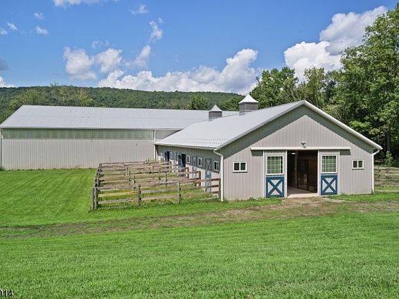 State of the art, farm accessed Equestrian Facility all set on a private 17.6-acres. Features include a Kistler built 10 stall barn, with 6 oversized split rail paddocks and a beautiful view of the mountains, 6 stalls are 12x12, 4 are 12x14, all with rubber mats, dutch doors, and paddocks. A wash stall with hot and cold water, heated tack room that overlooks the attached 80 x 180 indoor arena that features an open trussed ceiling, dust-free Tru-stride footing (a 30k purchase) lights and fans. A 30x40 Morton barn with 2 rooms, heated and 1 plumbed. Also, included is a 1786 small updated colonial, loaded w charm! 1.9 miles to Rt 31, 2 miles to Rt 57, 10 minutes to Hackettstown and 19min to Rt 78, gives you close access to the train, shopping, and highways. Truly the best of equine facilities.