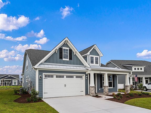 Quick Move In! Welcome to the Goldenrod. Upon entering from a large covered front porch, discover a foyer with a tray ceiling leading to a spacious wide-open living area. Two bedrooms with large closets and a full bath are located on the left with an open dining area just ahead with a coffered ceiling. The intimate great room features a 12' tray ceiling. A large, gourmet island in the kitchen offers additional seating and a surplus of counter space for large dinner parties or cooking large meals. Enjoy smaller meals with an extended breakfast area looking out onto the beautiful view of your backyard. From the great room, breeze through sliding glass doors onto a large, covered porch. The Goldenrod’s owner's suite offers an enormous walk-in closet accompanied by a beautiful owner's bath. The second-floor adds a bedroom, full bath, walk-in closet, and linen closet alongside a spacious loft area. Use this space as a large guest suite, media room, storage, or recreational room. With options for personalizing this model to fit your every need, the Goldenrod is full of possibilities. Make the Goldenrod the model you call “home” today! Welcome to Waterbridge, an established gated community in the sought-after Carolina Forest area of Myrtle Beach! If you are looking for a stunning location to build a new home that is also rich in amenities for you and your family to enjoy, look no further. Living in Waterbridge means living in a location that brings nature to your doorstep. With treelined and water view homesites, you are bound to find the perfect location to build your dream home. The overall coastal cottage-style homes show curb appeal at every angle and the approximately 120 acres of preserved land and 80 acres of lakes help make this the charming community many have come to love. There is no doubt that the bread and butter of Waterbridge are the award-winning, resort-style amenities featured there. Finding things to do just outside your front door will not be hard here. Grab a friend and go enjoy tennis, pickleball, or basketball. Journey out on Palmetto Lake via a boat launch where you can partake in all of the exciting activities lake life has to offer! Gatherings have never been better than at the beautifully crafted clubhouse with a refreshment center and catering-style kitchen. Break a sweat at the 24-hour fitness center, complete with cardio and weight training options. Waterbridge is also home to the largest residential swimming pool in South Carolina which includes Olympic-size swimming lanes, a landscaped island, jetted spa, and a swim-up refreshment center! Pack a bag because you will want to spend the whole day there! Outside of the community, the Myrtle Beach area has so much to offer! From golf to beautiful sprawling beaches with some delicious restaurants nearby, it will not be hard to find things to keep you busy! Nearby malls and outlets are good for some much-needed retail therapy and there is always a plethora of live entertainment and festivals to bring people together. Highly ranked schools in the Carolina Forest area and the close proximity to medical offices add the perfect touch of convenience. Don't miss the opportunity to call this unique community your home! Photo shown is of a similar house.