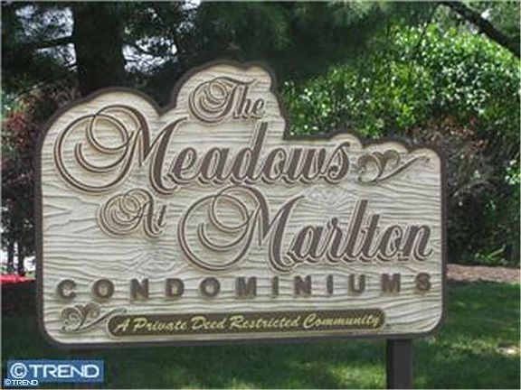 STOP RENTING!!! Take advantage of OWNING your home for the cost of your rent!! Interest rates are fabulously low...This is the time and here is a great opportunity to buy at a great price in Marlton Meadows! Gorgeous, brand new kitchen cabinets in cherry with full appliance package including brand new built-in microwave, newer gas range, newer dishwasher and refrigerator (older). Kitchen also offers built-in breakfast bar and all new formica counters, new light fixture, pantry closet, new paint and more. Entire unit has been freshly painted in neutral shade, brand new wall to wall carpeting in living room/dining area and newer wall to wall in bedroom. Updated full bathroom with beautiful oversized vanity cabinet and cultured marble sink/counter, brand new medicine cabinet & light fixture. Laundry room with full size washer and dryer plus space for storage. Triple slider door leading to covered patio. Heater and hot water heater are located in room off patio. Close to association pool, shops, restaurants +++