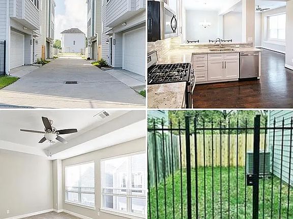 Available for quick move in. Contemporary three level home located in a quiet gated environment near the Houston Farmers Market and the Heights. Freestanding home with three bedrooms with en suite baths plus a convenient powder bath. Bright open living area on the second level with generous windows for natural light and a dining area that's pefect for hosting. Kitchen includes a charming breakfast bar, stainless steel refrigerator, and a walk in pantry. Luxurious master suite with double vanity, spacious walk in closet, separate shower and bath tub. Secondary bedrooms are well separated for privacy. Small fenced area for pets, and a true two car garage with storage space. Full size washer and dryer included. No smoking. Pets considered on a case by case basis.