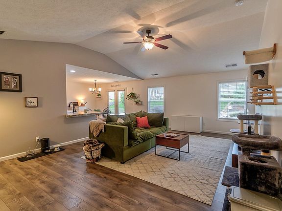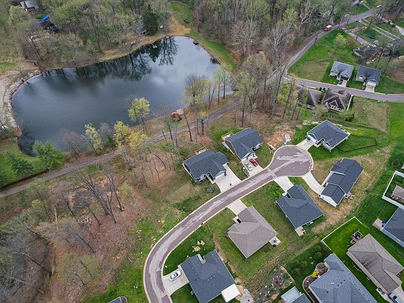 Welcome to this gorgeous home located within The Reserve at Hidden Lake neighborhood on Evansville's west side, where quiet living meets modern luxury! This ranch style 3 bedroom, 2 bathroom home is sure to impress with its excellent curb appeal and stunning lake views from the front porch. As you enter the home, you are greeted with a spacious foyer entry that opens up to the expansive living room. The living room, kitchen, and dining room all feature an open floor plan, providing a perfect space for entertaining guests. The high ceilings, large windows, and luxury vinyl flooring throughout this main living space make it feel airy and welcoming. The kitchen is a chef's dream, featuring modern finishes, a subway tile backsplash, breakfast bar, and stainless steel appliances. The large primary bedroom boasts a tray ceiling, luxury vinyl flooring, a walk-in closet, and an en-suite bathroom with a twin sink vanity and a stand-up shower. The remaining 2 bedrooms also feature walk-in closets, plush carpeting, and large windows. This home also includes another full-sized bathroom with a shower-tub combo and a laundry room, making it functional and convenient. Out back, you will find a large back patio and a sizeable yard, perfect for relaxing or entertaining guests. There is also an attached 2-car garage, providing ample space for parking and storage. The Reserve at Hidden Lake is a community that takes care of its residents, with an HOA that covers a number of things including trash and recycling, road maintenance, snow removal, and the lake and gazebo maintenance. Plus, the neighborhood is conveniently located close to amenities, making it easy to access shopping, dining, and entertainment options. Don't miss out on this amazing opportunity to own a beautiful home in a wonderful community!