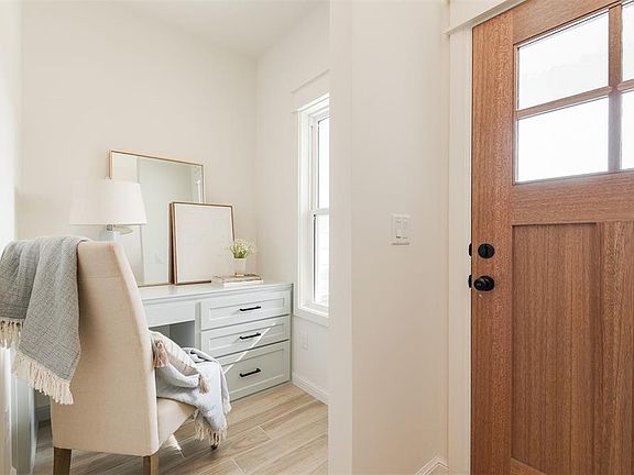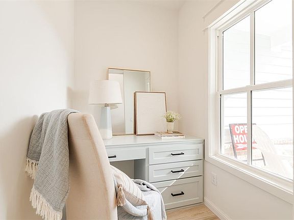 Lakefront homesiteEntertaining kitchenLight green exteriorPocket office