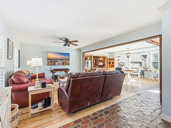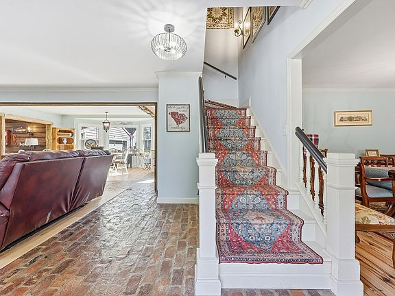 Your Southern-charmed coastal lifestyle starts here. Ideally located east of Highway 17, and just minutes from the MarshWalk, boating, dining, and the beach, this beach cottage sits on a desirable corner lot and offers the rare freedom of no HOA. This 4-bedroom, 3.5-bath home is filled with character and natural light, featuring multiple living areas designed for everyday life, entertaining, or flexible use. Inside, you’ll find heart pine wood floors, exposed brick accents, wooden beams, stained glass windows, and fireplaces. A formal dining room adds classic Southern elegance, while the open-concept living room, dining area, and modern kitchen provide excellent flow - updated in 2020! The home offers two spacious primary suites, including a first-floor primary bedroom with a convenient first-floor laundry, ideal for comfortable main-level living. A secondary primary suite upstairs is perfect for guests or multi-generational living. Additional features include plantation shutters, walk-in closets, built-in shelving, and a built-in safe. Thoughtful upgrades enhance the home while preserving its charm, double-hung swing-in windows, a renovated downstairs primary bathroom and and a reconfigured living area. Outdoor living is just as inviting, with a large screened-in and covered porch, a fenced-in portion of the yard, irrigation, and a brick driveway. The property includes a 2-car detached garage, workshop, additional storage, and a shed, offering endless possibilities for a home office, gym, studio, or storage for beach and boating gear. Located in the award-winning St. James School District and close to waterways, marinas, and beaches, this Murrells Inlet home delivers charm, flexibility, and lifestyle — all without HOA limitations.