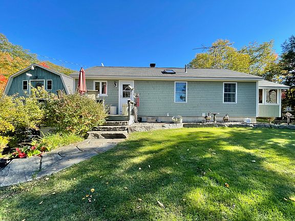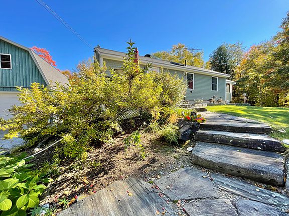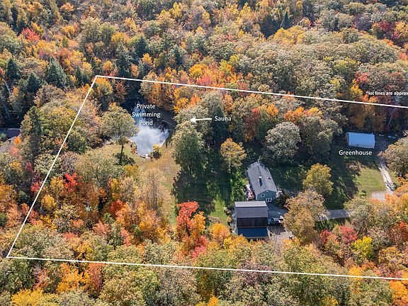 Tucked well off the road down a long gravel driveway you will find this sunny gem of a property. Surrounded by woods, this private ranch style home on a full finished daylight basement offers four potential bedroom options, one full bathroom, a large inviting kitchen, and a cozy living room centered around a wood stove and stone chimney. Upstairs you will find a large master bedroom with an attached three season sunroom, a sun soaked back deck off the informal dining room with great southern exposure, another bedroom option or a great home office, and a full bathroom. Downstairs features two additional bedroom options, a living room, a laundry room, and a utility room. The property is dotted with hard scapes, mature plantings, well thought out landscaping, a swimming pond and wood fired sauna, an oversized two car garage with storage space above, a huge greenhouse, plenty of outbuildings, and ample space to spread out. This well loved property has so much to offer- come take a look today.