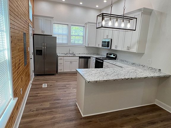 This newly painted home showcases beautiful wood flooring throughout and offers plenty of storage space. The bonus room at the back of the house serves as a third bedroom. Additionally, there is a large entertaining deck at the rear of the home that overlooks the spacious yard.