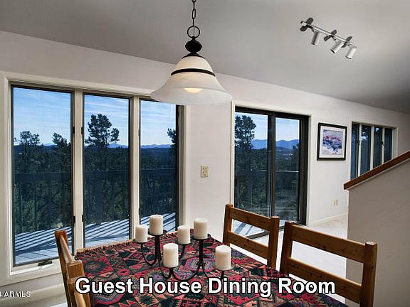 $100k price reduction! Priced below current appraisal! Updated Kitchen! Revisit this one! Breathtaking 360 degree mountain views! Additional 1,432sf in detached guest house! Custom residence with split floorplan. Interior features include 3 fireplaces,separate living and family room + office/library, gym and sauna. View Master suite with jetted tub & blt in dressers,eat in kitchen with butcher block island. Rich Walnut floors and vaulted beamed ceiling add to this homes rustic nature. Guest house includes kitchen,dining,bedroom,1 1/2 baths plus family rm/den all with views to die for! Just under 2 acres, this wooded lot makes you feel a million miles away...right in the heart of town.Top it all off with the massive garage for all your toys.
