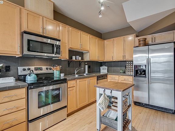Beautiful Townhome style Condo in the sought after Timberland Falls neighborhood. The open kitchen has s/s appliances. Wood floors throughout the main floor. Desirable end unit with attached two car tandem garage. Parks and walking trails all around, including Forest Park. Great location: just minutes to Nike, Intel, Downtown Portland, NW 23rd, and max station. 1/2 mile from newest upscale shopping center which includes Market of Choice.
