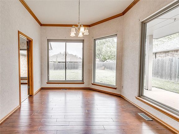 Unbelievable value in Edmond Schools.Manufactured hard wood floors throughout all bed rooms and main living areas.Entry opens into a large living area w/ amazing natural light & open to a formal dining w/ wet bar. Open layout is phenomenal for entertaining. Large kitchen w/ mostly stainless steel appliances & spacious informal dining. Large master retreat w/ jetted tub, remodeled shower, make-up vanity & walk-in closet. One guest room can flex as an office w/ gorgeous built in shelving. Energy efficient Anderson windows & glass sliding door installed in '15. Water heater updated in '18, Garage door & springs replaced '19. HOA dues include: Front yard lawn care, hedge trim monthly & exterior trim painting periodically to maintain beautiful curb appeal throughout the neighborhood. Relax on the large back patio w/ a spacious yard. Close to Quail Springs Mall, Restaurants & Kilpatrick Turnpike. ****Final and Best Offers due 4/20/2019 @noon***