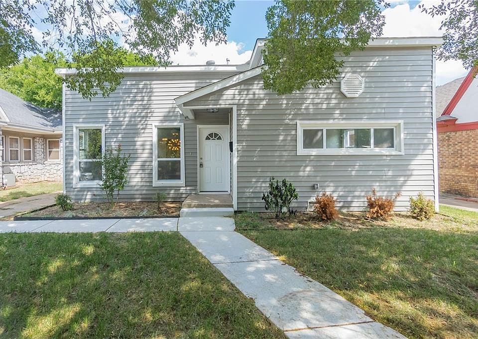 Contemporary bungalow where historic and modern share a common ethos. Sun filled living room has gleaming hardwood floors, a mock fireplace flanked by two windows, tall ceilings, an arched passage way into dining room. Charming brick post defines the kitchen where stainless steel appliances, a single bowl sink with window into back yard and sparkling mirror tile backsplash adds glamor to the kitchen - the heart of the home. There's an adorable breakfast nook with a picture window. The dining room has a stunning starburst light and its own picture window for those special meals around the dining room table. Master and secondary bedrooms are spacious. The hall bath has tub/shower combo with rain showerhead, tub-to-ceiling tile and a ribbon of shimmering glass tile, vintage medicine cabinet. Hardwood floors throughout home, ceramic tile in kitchen, laundry and bathroom. Laundry room just off the kitchen. Detached 1 car garage/shop/storage, large back yard with mature shade trees.