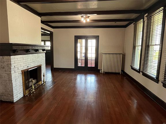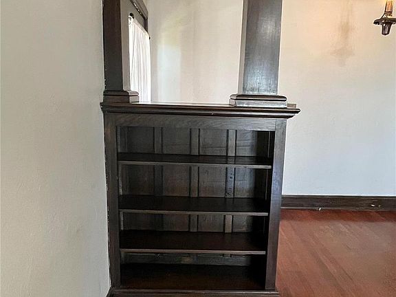 This home has character and charm! Natural woodwork and built-ins throughout. The exterior is brick with some replacement windows. Living room is spacious with large windows, hardwood flooring, and built-in bookcases. There is a sunroom off the living room and dining room. Dining room has hardwood flooring and more built-in cabinets. Kitchen has wood cabinets, refrigerator, and oven/range. There are two bedrooms and one bathroom on the main level. The basement is unfinished. There is off street parking behind the house. The home is situated on a hill with a great view of Hannibal. Owner/agent