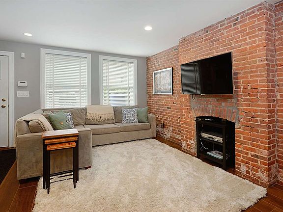 At last the perfect width 15X100 home completely renovated, so you don't have to ...a stunning and bright one family brick home with beautiful deep yard on quiet midtown Park Ave. 3 bedrooms, 2 full baths, and powder room distributed flawlessly. 1st floor: renovated kitchen with a gleaming island and custom cabinetry, marble counters & stainless steel appliances, open living/dining/family area with charming exposed brick. Parlor floor: 2nd living area, renovated full bath & bright rear bedroom with W/D. 3rd fl: 2 sunny bedrooms & large bath with skylights. Original details throughout. Central AC/Heat, Hardwood floors, Porcelanosa tile, Marvin windows and custom window treatments, repointed facade. Large private yard, maintenance-free with pavers and turf green grass, easily accessible through large sliding doors on ground floor. Ideal midtown location, on a quiet block that is close to Columbus and Church Square parks. In the heart of Hoboken, with NYC bus one block away; schools, restaurants, shopping, and parking just moments away.