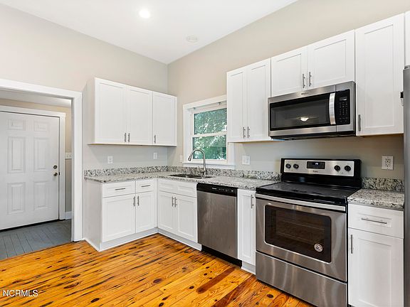 Step inside to discover an inviting open floor plan with original, refinished knotty pine floors that exude warmth and character. The updated kitchen is a chef's delight, featuring sleek granite countertops, soft-close drawers, and contemporary finishes that enhance both functionality and style. The renovated bathroom offers a standup shower, pedestal sink & contemporary fixtures. Enjoy seller included offerings with blinds, refrigerator, washer and dryer currently in the home. HVAC new in 2023 w/ UV light! New paint throughout! Home has 10 year termite bond! Electrical system updated 2021! This charming bungalow not only offers proximity to downtown Wilmington and its waterfront but also easy access to the lively Brooklyn Arts District. Whether you're drawn to the area's historic allure or its artistic vibrancy, this home positions you perfectly to enjoy the best of both worlds. Don't miss this opportunity to own a piece of Wilmington's history with all the comforts of modern living. Schedule a tour today and envision yourself in this perfect blend of old-world charm and contemporary elegance. Move in ready! Street is currently being restored to the historic brick surface and will be lovely!