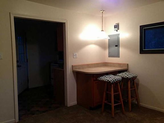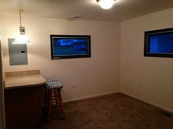 All new and updated!! New oak kitchen complete with new electric stove and stainless fixtures. Freshly painted and new neutral carpet throughout. Updated bath with linen closet. Ceiling fans and large closets in both bedrooms. Updated electric panel, furnace, central air and hot water tank. New siding, steel doors and patios. Shed for storage. 5 bay detached garage for all the toys! Use for yourself or rent for additional income. House backs to woods.