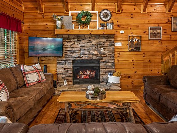 Multiple offers received, highest and best due 10/5 at 12:00pm ET. $78,228.50 gross rental income in 2022. http://www.vrbo.com/2552106. Comes fully furnished, located in the highly sought after Sherwood Forest Resort, just minutes from the Parkway in Pigeon Forge, this spacious and inviting two-story cabin has two bedrooms, two bathrooms and a loft game room. The main level offers a cozy living area with a stacked stone gas fireplace, dining area and full kitchen with new appliances, as well as a bedroom and full bathroom. Just off the living area, you'll find a wrap-around deck, complete with a hot tub and gas grill. Upstairs you'll find the primary bedroom - complete with an electric fireplace, jetted tub and full en-suite bath. The open loft game room is also home to a set of bunk beds for additional sleeping capacity. Easy access, all paved and great parking! Crawlspace recently renovated: Aquastop Crawlspace Door, AquaStop Air System (keeps humidity low) and AquaStop CrawlSeal for Walls (on foundation walls to drain into Aqua Stop Basement Gutter system). Wall liner comes with a 25 year transferable warranty. Seller prefers to use Smoky Mountain Title.