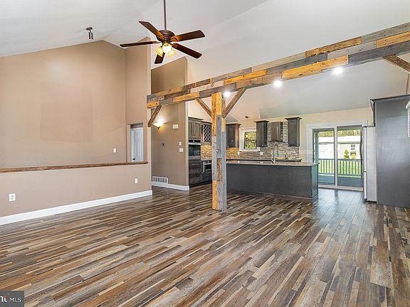 - Ceiling Fan(s), Combination Kitchen/Dining, Exposed Beams, Open Floorplan, Eat-in Kitchen, Kitchen Island, Recessed Lighting
