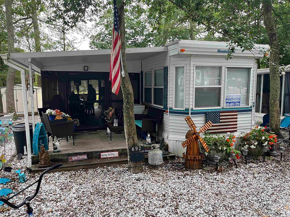 Spacious 3 bedroom, 1 bath unit that backs up to the meadow with great views. Open floor plan with a bonus Florida room, large side yard, and an open back deck. Perfect opportunity for a summer getaway at an affordable price point. Call today to schedule your private tour before it's too late! Cape Island is a seasonal park from May 1st to November 1st. Seller is offering an $8500 credit to cover the first season of lot rent!