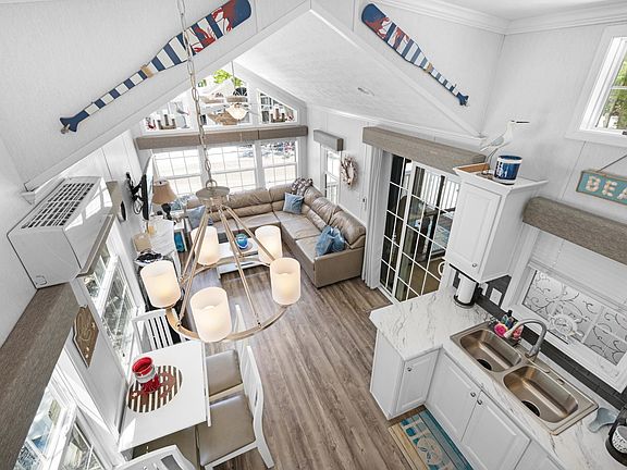 Discover this charming 2018 Skyline park model located in the desirable Cape Island Resort! This model boasts an open floor plan with 3 Bedrooms and 1 Bathroom. The master bedroom is conveniently situated on the first floor, while an upper double loft area features two additional bedrooms. Enjoy the outdoor space with an attached 10’x40’ Florida silver top screen room and a storage shed for all your needs. Cape Island Resort is open from May 1st to November 1st and offers a variety of amenities, including two pools, a playground, tennis courts, snack stand, 24 hour security and much more! This home is move-in ready—don't miss your chance to make it yours!