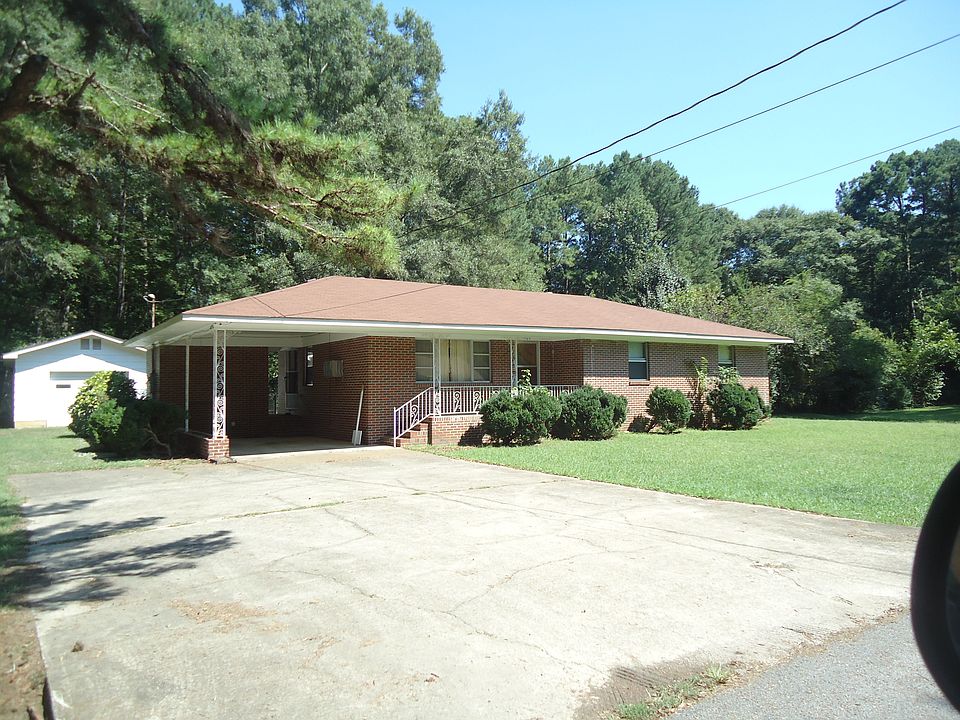 A 3 bedroom 1 bath brick rancher with livingroom, dr, kit, attached one car carport, detached one car garage--fenced back yard, hardwood floors, 2 acres plus or minus-roof only 3 years old--central heat and air