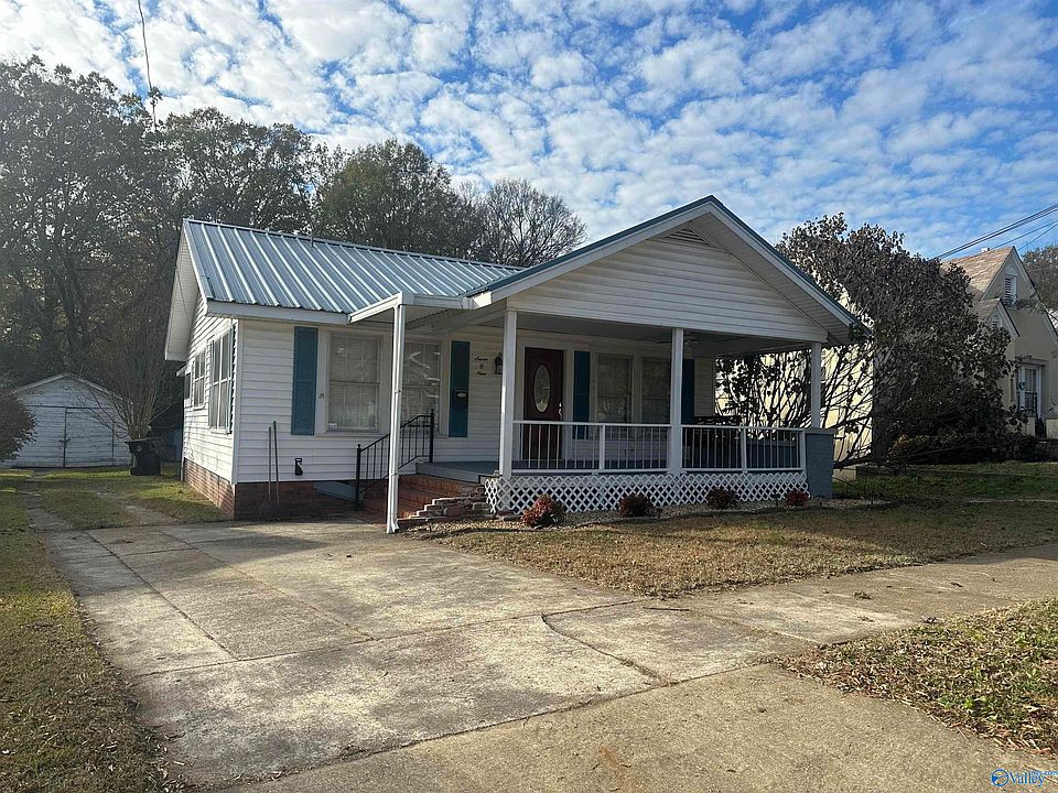 Located near the center of everything! Super cute bungalow with easy care vinyl siding and large covered front porch! Three bedrooms, two baths, living room with gas fireplace, dining room and kitchen. Loaded with character, including bulit-ins, arched doorways, glass doorknobs, and more! New flooring in kitchen and dining, hardwood floors throughout. All kitchen appliances stay. Nice deck on back and detached storage building. Immediate occupancy! Asking only $145,000!