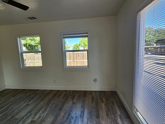 Cute and clean, recently remodeled 2 bedroom, 1 bath cottage house in Visalia! PLEASE READ ENTIRE AD before contacting us. PHONE contact is necessary for an appointment. Convenient South Central Visalia location in this little 2 bedroom, 1 bathroom house. Six small houses surround a nicely landscaped and fenced central courtyard in this well maintained complex. New laminate wood flooring throughout this home. Recent interior paint highlights woodwork. Remodeled kitchen features new cabinets, granite counter tops with stainless steel sink, garbage disposal and apartment-sized dishwasher. Gas stove with built-in microwave range hood. Refrigerator area has a water supply hookup for an ice maker. Renovated Jack-and-Jill style bathroom with small vanity sink and clean bathtub/shower combination with nice tile surround. Dual-pane windows and mini-blinds throughout this charming, renovated house. CENTRAL HEAT and AIR CONDITIONING. Ceiling fans throughout the unit. Laundry room has hookups for a washer and gas dryer. Tenant provides their own washer, dryer and refrigerator. Large, shady fenced backyard with recent 6 ft cedar privacy fencing. Designated parking spaces for two cars just outside the unit is accessed through the alley. Small pets allowed with a signed pet agreement a additional pet rent of $30/month/pet. Maximum two pets. Pets subject to breed & size restrictions. Front landscaping maintained by landlord. Tenant is responsible for their back yard care. Tenant pays for electricity, gas and water. Landlord provides sewer and trash services, and monthly exterior pest control service. Close access to 198 freeway, Mt. Whitney High School, downtown Visalia and Kaweah Health hospital. Area schools are Mt. Whitney High School, Divisidero Middle School and Washington Elementary. 709 South Encina Street, Unit C. PLEASE DO NOT DISTURB EXISTING TENANTS. $1350.00/month + $1,350.00 deposit. This is a No Smoking property. Phone Contact Preferred Email inquiries will receive an automated response with an application and instructions. We must have an application on file prior to scheduling a viewing appointment. Once application has been submitted, please phone and leave a voice message to receive a return phone call to schedule a viewing appointment. If you simply call and hang up without leaving a voice message, you will not receive a call back. If ad is still posted, property is still available! Initial lease term of 6 months. Owner Pays for Sewer & Trash. Tenant pays for water. Owner provides common area landscaping in front of units, tenant provides backyard care for their own unit. Owner provides monthly exterior pest control service. Tenant provides their own washer, dryer & refrigerator. Small pets allowed, subject to size and breed restrictions. Pet agreement and additional pet rent of $30/month required. Max of two pets. This is a No Smoking property.