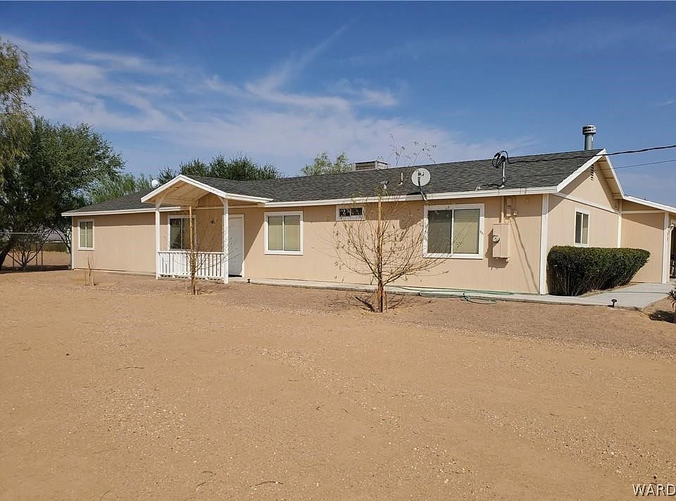 Large 3 bedroom 2 bathroom 2000+ square foot sitebuilt home with 2X6 Construction on 1 fully fenced acre!! Bring the horses and come on out to the Wild West! Located in ever growing Golden Valley AZ enjoy beautiful panoramic Arizona mountain views and plenty of room to spread out from your neighbors as all surrounding properties are 1+ acres as well. Less than a 1/2 mile off of paved roads. Home is fully fenced with an electric gate for added convenience/security with backyard fenced separately. Enter the side entrance to the front of the home where you will find a large open living room, sizable dining area, and oversized kitchen with an overage of cabinets and a spacious corner pantry. All appliances are included: electric stove, side by side refrigerator, dishwasher, hooded microwave. Split bedroom floor plan. Master bathroom features soaking tub and large separate walk in shower. Master closet is enormous and takes the cake for the largest around! 2 extra guest rooms are located on the opposite end of the home featuring ceiling fans and faux blinds throughout. Also on the east end of the home is an oversized great room with woodburning fireplace!!! This floorpan has all the space a homeowner would need! The indoor laundry includes washer and dryer and is attached to the 4 car garage with automatic garage door openers. There is a bonus concrete slab next to the garage for RV/additional parking. PLENTY of space on your 1+acre for the oversized shop you've always wanted! The back/side yard has a HUGE covered patio. The property boasts several mature trees. Also included is not 1 but TWO 40 ft conex containers for extra storage!! Call your agent today for an appointment!! Room measurements: Great room 14 6"x 27 , Living room 13 6 x18 , 1st bed 11 x12 , 2nd bed 11 x11 , laundry room 6 x 9 6 , Hall bath 6 x11 , Kitchen/Dining 13 x24 , Master bed 13 x 17 6 , Master bath 9 x9 , Master closet 8 x 14