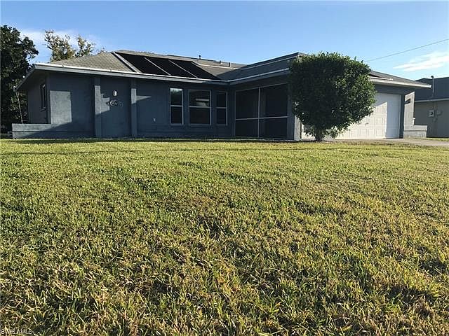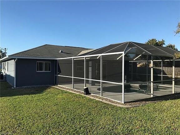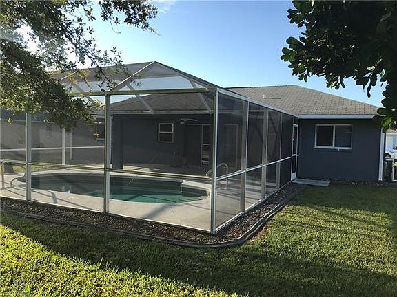 Beautiful quaint pool home in Cape Coral! Assessments paid!! Pool is screened in along with under truss lanai. Pass through window convenient for entertaining. Split floor plan with living and dining room in the heart of the home. Lush lawn in the front and rear of the home with complete sprinkler system. Great price for pool home in welcoming neighborhood!!