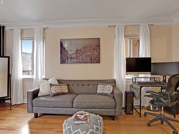 1031? Still renting? WFH? This historic Hamilton Arms studio combines history and convenience in the heart of Goose Hollow. Period millwork, hardwood floors, high ceilings, tile details + ample closet space! Second floor location is ideal for quiet + privacy/work from home space. Award winning HOA covers everything besides electric + internet in this secure and thoughtfully maintained building. Laundry + bike storage + elevator. Walk to parks + shopping + groceries + quick access to the Max!