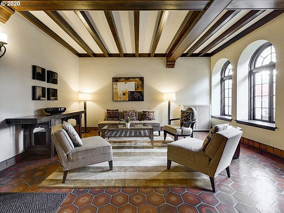 Nestled in peaceful Goose Hollow between downtown's vibrant West End and Washington Park - this 4th floor studio combines historic details and functionality with ease. Corner unit maximizes light & privacy while spacious and flexible floor plan is enhanced by high ceilings, large windows + Murphy bed. WFH? No problem! French doors lead to additional flex space/home office. Laundry + storage + elevator = total convenience. Walk, bike or hop on the streetcar and see where the day takes you!