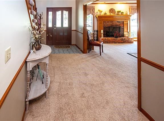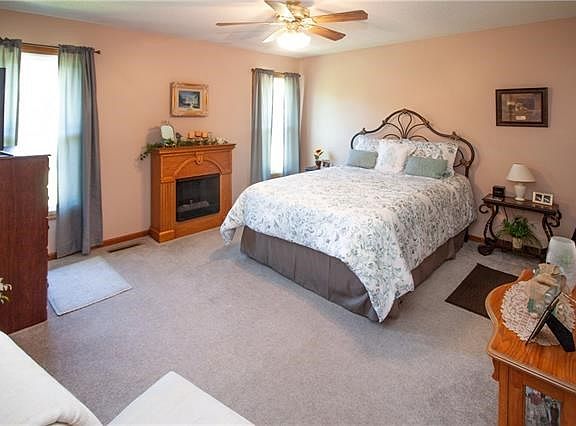 No backyard neighbors. This beautiful 1 1/2 story backs up to a farm and wildlife can be seen from your kitchen window. Spacious floor plan. Tons of kitchen cabinets, big eating area, gorgeous fireplace in the living room, 1st floor laundry, 1st floor main suite, loft over looks entry, two spacious bedrooms upstairs. Wardrobe in bedroom above garage stays. Full walk out basement and utility garage in basement. Mature trees and pretty landscaping. Seller has recently installed new granite countertops, new carpet on main level, thermal windows, steel exterior siding, put a new insulated garage door in basement utility and much more! Very clean and move in ready 2022-07-21
