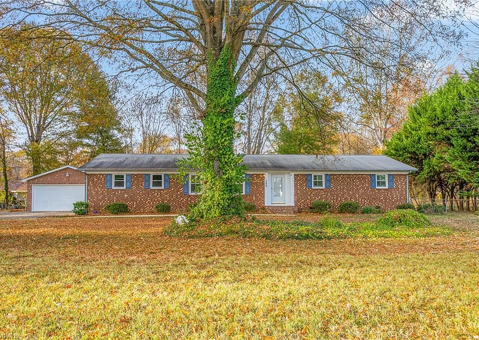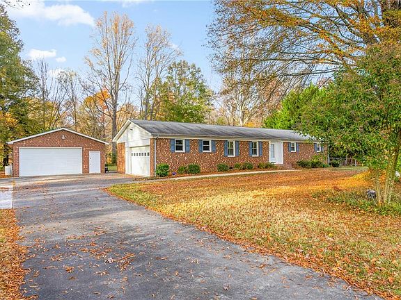 Well maintained brick ranch situated on almost an acre in High Point! Beautiful wood flooring, open Kitchen with solid surface countertops, generous laundry room with ample storage. The large Dining Room is great for entertaining and gatherings. Cozy Living Room with wood stove, perfect for relaxing. Plantation shutters provide additional functionality and character, tile shower surrounds in both baths. Spacious back yard, beautiful patio area and TWO two car garages! There is also a concrete pad behind the detached garage for a future shed/storage space.