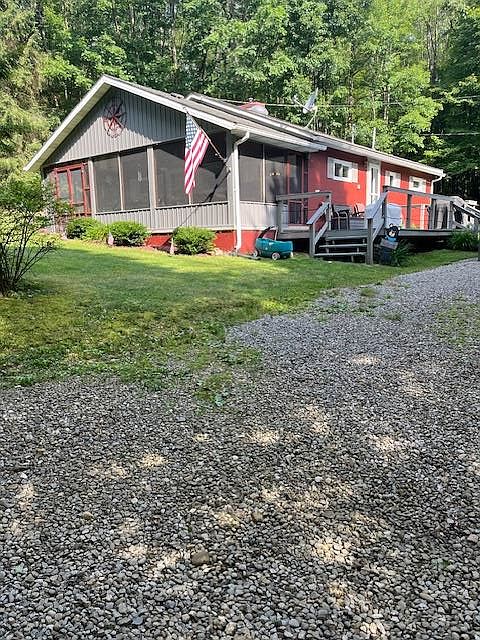 Looking for a summer home, a permanent residence or just a place to get away from it all? This property is it!! Immaculate 2 BR ranch offers a newer kitchen with island. A full-length brick fireplace w/pellet stove insert is the focal point of the living room. But you will spend all your time either on the deck or in the screened porch enjoying nature. New windows. Back-up generator, whole house fan, drop down steps to attic, 2 car carport and a 12x20 shed for all your toys and more. Property is private and borders the Allegheny National Forest. Sewage enforcement officer passed the septic system in 2021.Come check this one out. Shown to prequalified buyers only.