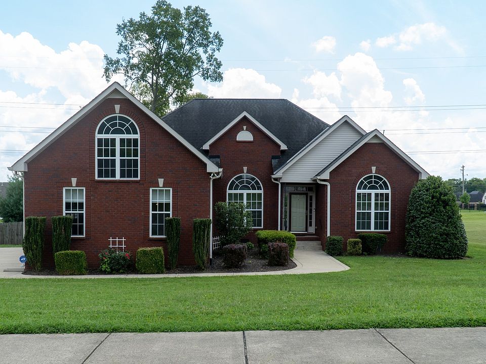 All brick, freshly painted walls, ceilings and trim, one level with bonus room over the garage sitting on over half an acre. All four bedrooms are on the main floor, 2 full bathrooms, split floor plan. Large open living room with fireplace, eat in kitchen with all appliances to remain. Huge pantry, formal dining room, Hardwood/Tile/Carpet floors, Walk in laundry room. Master suite features double vanities with walk in closets and built ins. Private fenced in backyard with mature trees.