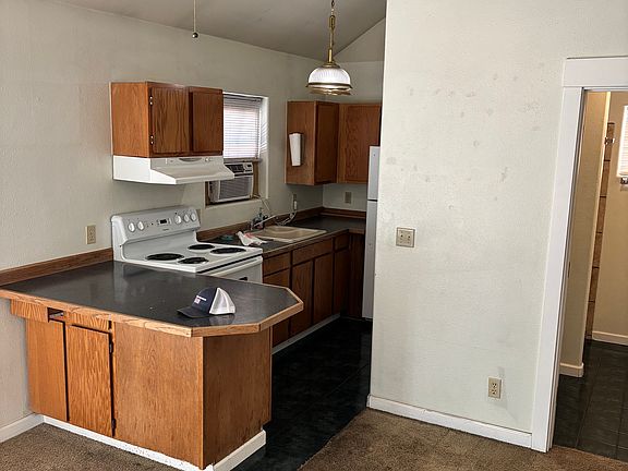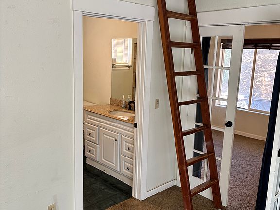 Small home with garage workshop below. 2nd bedroom is a loft with ladder so home is not kid friendly. Laundry hookups in bathroom. Small wood stove with glass door. One year lease. Pet might be okay with agreed rent and security.