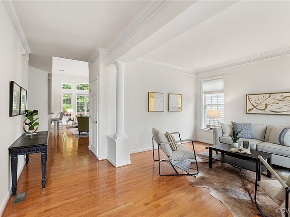 This elegant 2-story brick and vinyl transitional home is nestled into a peaceful cul-de-sac in The Parke at Manakin Woods, just minutes from 288 and a stone’s throw from Short Pump. With 4 bedrooms, 2.5 bathrooms, and fresh paint and new carpeting throughout the interior, this is an impressive house in a sought-after neighborhood! Enter in through the front door and you’ll notice beautiful oak hardwood floors and a foyer flanked by formal living and dining spaces – perfect for hosting dinners, game nights, and book clubs. The 2-story Great Room lies just beyond and features vaulted ceilings, a wall of windows, plenty of natural light in the daytime, and ample space for gatherings around the gas fireplace. The kitchen boasts abundant cabinet space, granite countertops, a center island, gas cooking, a pantry, and an eat-in area. A sunroom off the kitchen overlooks the private wooded backyard – a nature lover’s retreat! – and can easily double as a second (or third) living or dining space. This is also where you’ll access the rear deck. The first-floor owner’s suite features a large walk-in closet and en suite bath with a shower, soaking tub, double vanity, and water closet. Upstairs, you’ll find 3 additional generously sized bedrooms with ample closet space; a full bath with a shower and tub; and a linen closet. A walk-in, floored attic space provides extra storage. Additional highlights include a two-car garage, laundry room, and a convenient half-bath on the main level. The Parke at Manakin Woods is a short distance from nature paths, tennis courts, and a community lake, and a 15-minute drive to shops, restaurants, and grocery stores in Short Pump. Quick closing is available.