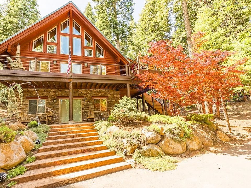Just bring your suitcase and you are home in the mountains! This spectacular turn key 4 bedroom, 3 bath log cabin will not disappoint. Located in the desirable Lake Almanor Country Club you are close to all amenities including beach, boat ramp, golf course and tennis courts. Your log home eludes privacy being situated on over a 1/2 acre. When you walk in you will enjoy the open beam wood ceilings and stone hearth fireplace. Downstairs you have plenty of space for guests with an additional kitchen, dedicated media room with theatre seats and two bedrooms. Your explansive master is on the third floor with master bath and seating nook for relaxing and/or reading. Outside one can enjoy the stamped concrete patio or enjoy the sun on the upper deck with brand new cable rails. There is plenty of storage with the newer detached two car garage; a bonus inside is the golf cart included with the property! All furnishings are included with this one! Don't miss out on living in a true log home, this is a must see!