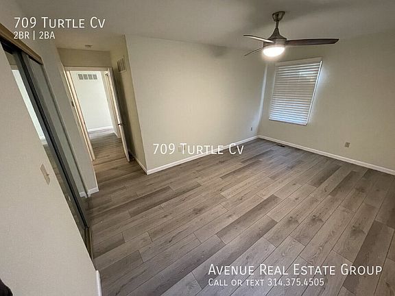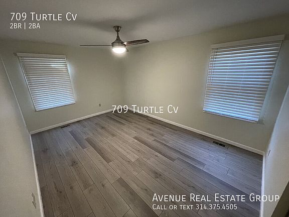 No showings until May 1st. Beautiful 2bed 2bath freshly renovated villa town home in the sought after Turtle Cove Community with spacious 2 car garage! Beautiful VLP flooring thought the entire home. Kitchen features new stainless steel appliances with white cabinets and quartz courter tops with oversize island. Enjoy your oversized living room with electric fire place and custom built-in shelving. Sliding Glass doors open up to your back deck overlooking your spacious level backyard with mature trees. The big master bedroom features fan with overhead lights, ample closet space and its private full bathroom. 2nd bedroom feature overhead light and large closet. The hallway bathroom host an updated vanity, ceramic tile flooring and new tub with shower. Plenty of storage in the clean unfinished basement with extra shelving, washer/dryer hook ups. Located near Queeny Park, school, restaurants, shops and major roadways. This gem won't last long! Lawn Maintenance included! Tenants pay Electric & Water!