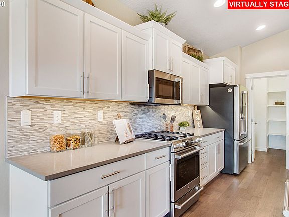 This is a move in ready home loaded with many features. 3 car garage, covered patio, private Jr suite upstairs, dual zone heating, added exterior plugs under the eves, fan pre-wire in each room, stained maple cabinets throughout, quartz counters throughout, 12x24 tile in wet areas & tile shower, LVP flooring on mail level, upgraded carpet in bedroom and stairs, Gas & stainless steel appliances. Oversized home site with front & back landscape with sprinklers system and fully fenced. Ready now
