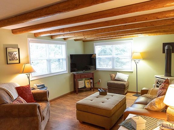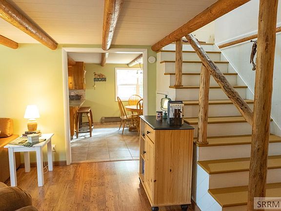 Log home in the Moreland area in a beautiful setting! This home is so nice and clean, you can;t help but fall in love. Ceilings are all log beamed, living room has a free standing gas fireplace that supplements the electric heat thru the entire home. Kitchen is spacious with lots of cabinets and countertops plus tile flooring. Off the kitchen is the dining room, panty, back porch laundry/mud room and a full bath. Upstairs is a family room plus 2 bedrooms and another bathroom. Windows are all new upgraded vinyl and the 2nd stoory windows are the pull out easy clean type windows. The property boasts of just over 2 acres with a partially fenced yard, perfect for your 4-legged friends. The acreage is partitioned offed with 3 corrals, 2 loafing sheds and irrigated pasture. There is also a 12x16 heated tack room/shed plus18x24 covered hay storage. If cattle is your game, you will like the 2 cement feeders. Out in the corrals is a heated stock waterer, the one in the pasture does not work. Yard lights need bulbs, she thinks, but there is a overhead light on the tack shed. Properties like this one are not available every day, so make sure you do not miss it!