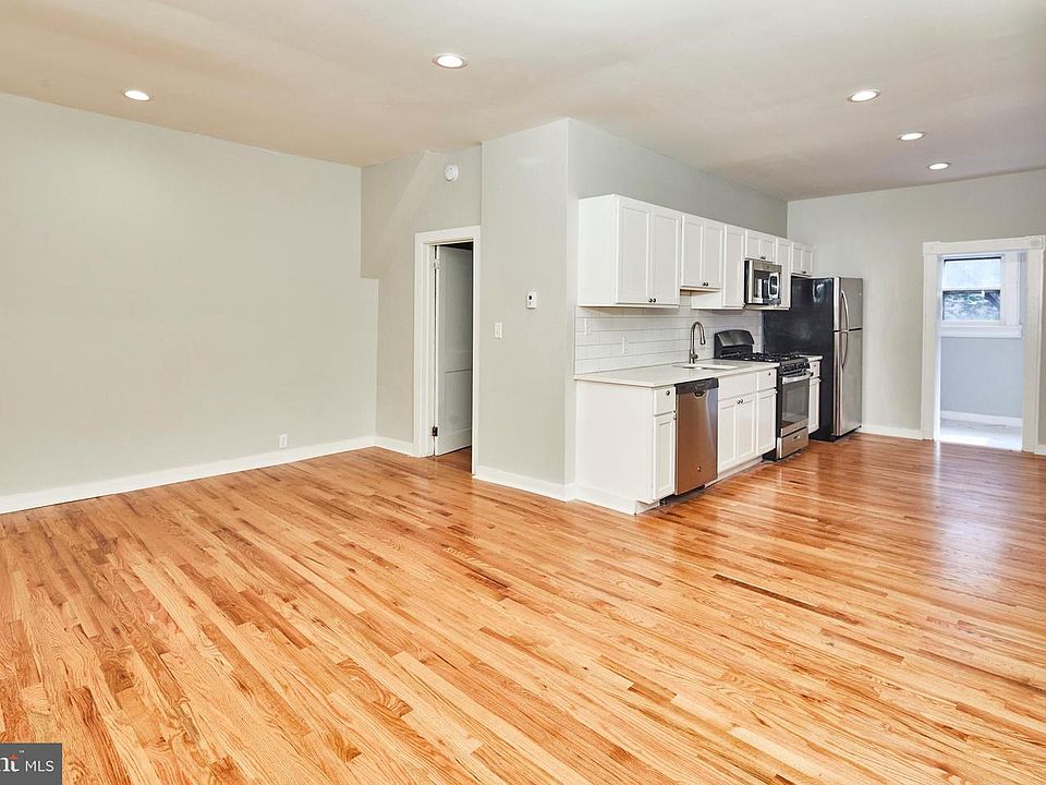 Newly renovated and spacious one bedroom apartment in the quiet and convenient Triangle neighborhood. This first floor apartment has it's own entrance and a modern feel in a beautiful historic building. Walk into a bright and open main living space with refinished, original hardwood flooring, recessed lighting and fresh paint. A brand new kitchen features quartz counter tops, stainless steel appliances, new cabinets, new fixtures, and more. Off the kitchen is a laundry room with new tile flooring and access to the backyard. A large bedroom has good closet space and a new ceiling fan. The full bathroom has new modern tile, new fixtures and a lot of natural light. Worth the visit. Welcome Home.