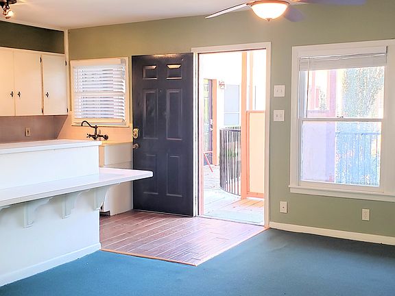 Retro-Contemporary flat with lots of kitchen cabinetry and storage space. Perfect for someone with minimal furniture; built-ins replace the kitchen table, shelving, tv stand, desk and vanity! Wood flooring or carpet throughout and 2 closets. Pool, lounging and 1 parking spot. Walk to Rio Rancho taco trucks hangout. Cats only. Water, sewer, trash included! You pay electric and gas. Sorry No Dogs. 12 month lease minimum. Pictures are an example. Colors may vary.