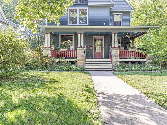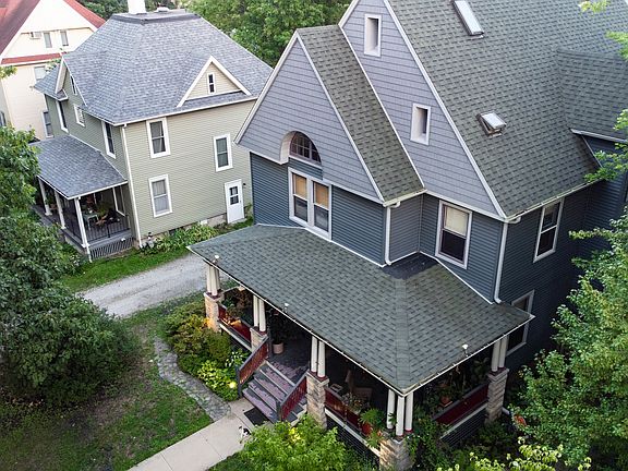 Enjoy the ambiance of a brick-paved street with charming street lamps and beautifully landscaped 3-story Queen Anne style turn-of-the century beauty. This home offers 5 bedrooms, 2 1/2 baths with a two car garage and is filled with unending possibilities! The spacious dreamy front porch is inviting and relaxing. As you enter this home, you are greeted with a small foyer that flows to the main hub of the home featuring lovely hardwood floors, original staircase and beautiful vintage fireplace and connects to a front parlor, dining room, and spacious kitchen with updated back splash and butler's pantry. Outside is a lovely fenced yard with a patio to enjoy friends and family that features a spacious 2-car garage with workshop with attached keypad and remotes. The 2nd floor features 4 bedrooms and a full bath. On the 3rd floor which could function as its own apartment, there is a spacious bedroom with a full bath and a kitchen/dining room with a stove, countertops and pantry closet. There is additional living space on the third floor as well with a storage closet. The basement is unfinished and houses the washer and dryer, boiler and water heater. Updates include a new vinyl siding in 2020, an updated kitchen in 2018, and a new roof to the home and garage 2015. There are vintage radiators that are heated by a steam boiler. Imagine the endless possibilities this home can offer you!